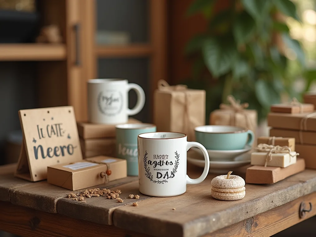 Para o Dia do Comerciante, o ideal são peças úteis e com um toque pessoal. Porta-recados, chaveiros com tema de negócio, ou pequenos objetos de decoração para o balcão se destacam. Pense em algo que o comerciante possa usar no dia a dia da loja.