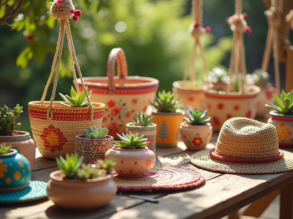 | Flores e Folhagens em Macramê | Textura artesanal, toque natural, durabilidade. | Perfeitas para pendurar em varandas ou criar um cantinho aconchegante. Use fios de algodão para um visual mais suave. |