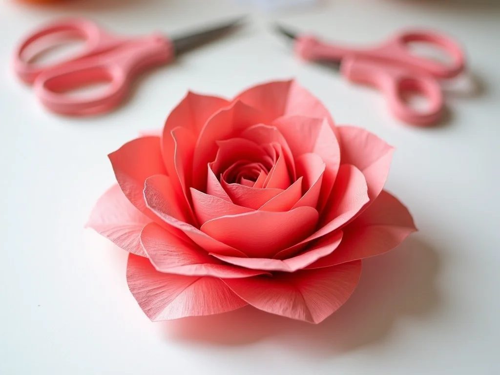 Dica Prática: Para um efeito mais realista em flores como rosas, experimente usar duas tonalidades de papel crepom para as pétalas, uma mais clara no centro e outra um pouco mais escura nas bordas.