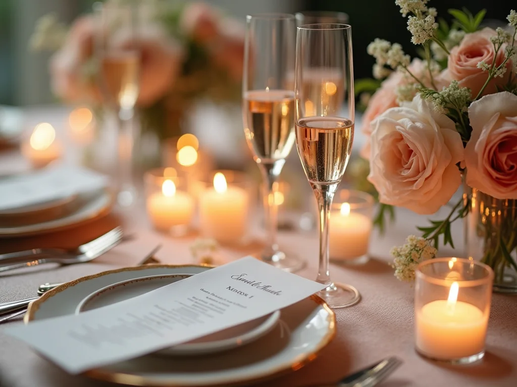 Ao invés de muitos elementos, focamos na qualidade. Um arranjo de flores delicado, um centro de mesa com um vaso de design interessante, velas que criam um clima intimista. A iluminação suave também faz toda a diferença. O objetivo é criar um ambiente acolhedor e chique, onde o foco principal sejam vocês dois e a celebração desse amor.