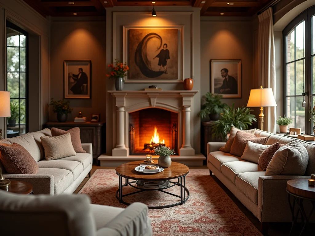 | Mobiliário Estratégico: Conforto e Flua em Harmonia | Sofás confortáveis, poltronas convidativas e mesas de centro funcionais. A disposição deve facilitar a circulação. | Posicione os móveis de forma a criar uma área de convivência em volta da lareira. Sofás e poltronas com tecidos macios, como veludo ou linho, convidam ao relaxamento. |