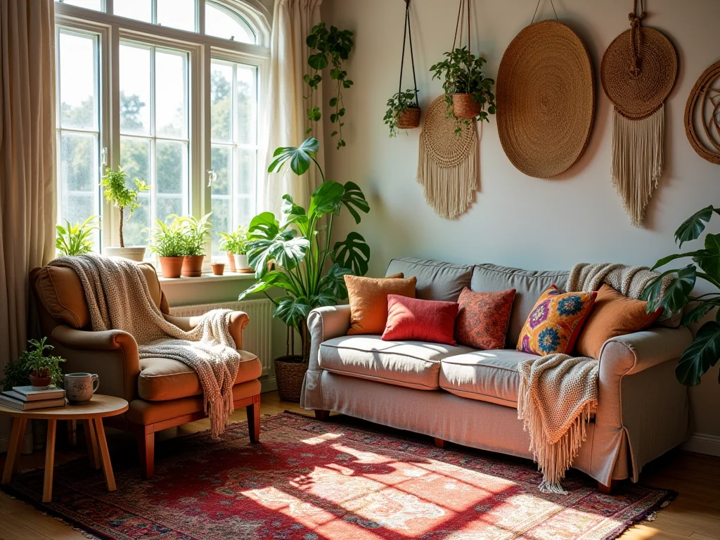 Vamos falar de um toque que faz toda a diferença na decoração estilo boho: os têxteis! Pensa comigo: um tapete felpudo, umas almofadas cheias de textura e uma manta gostosa. Eles não são só enfeite, sabe? São eles que criam aquela sensação de aconchego, de “vem, senta aqui comigo”. É a magia dos detalhes que transforma um espaço comum em um refúgio.