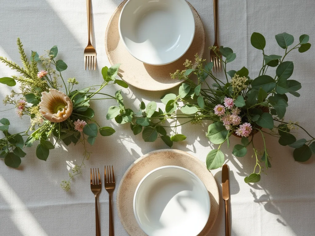 Dica Prática: Para um toque ainda mais pessoal, distribua pequenos ramos de alecrim ou eucalipto em cada lugar da mesa. Além de perfumar suavemente o ambiente, dão um charme extra que os convidados vão amar.