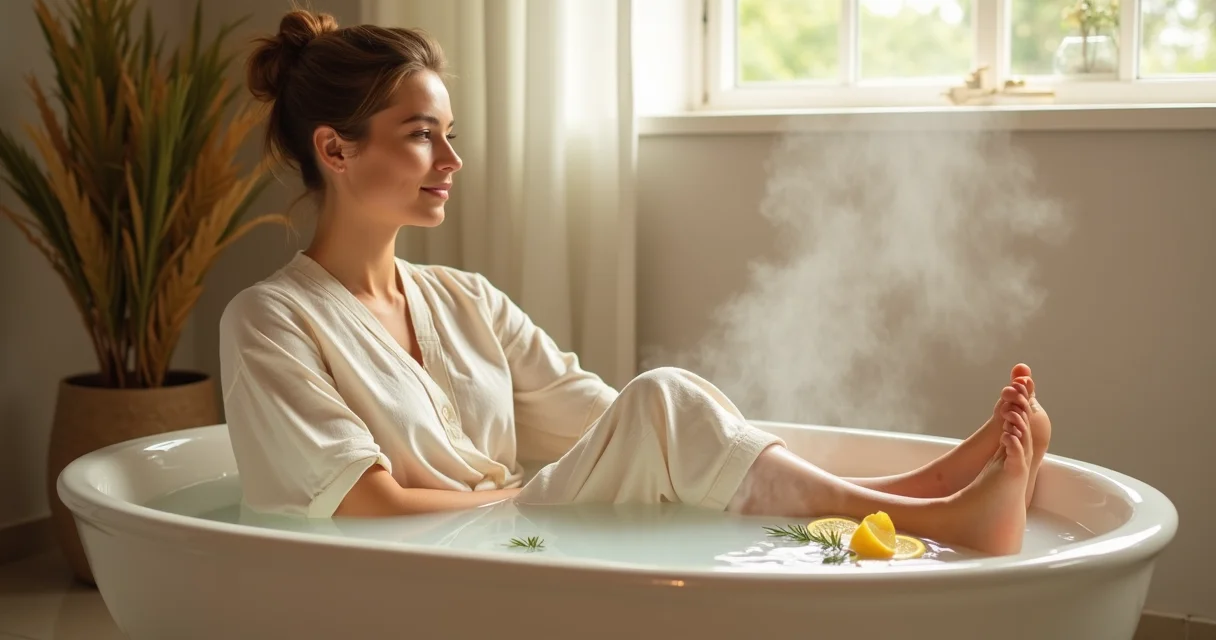 - Passo 4: Mergulhe e Deixe a Mágica Acontecer – Com tudo pronto, mergulhe seus pés na água morna. Deixe-os lá por 15 a 20 minutos. Sinta a água abraçando seus pés e o calor agindo. Esse tempo é crucial para que a prática milenar melhore a circulação local e ajude a movimentar o excesso de líquidos corporais, trazendo aquele alívio imediato e um relaxamento profundo.
