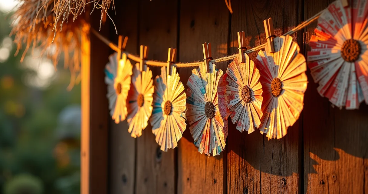 Bandeirinhas de Jornal ou Revista: Dê um toque retrô e sustentável! Recorte tiras de jornais ou revistas antigas e monte bandeirinhas coloridas. O efeito visual é super charmoso e ninguém imagina que é material reciclado.