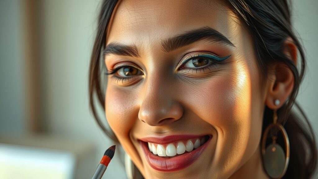 Vamos combinar, para o dia a dia, escolha cores mais suaves, como tons pastel ou terrosos. Aplique um traço fino rente aos cílios superiores para um look discreto e elegante.