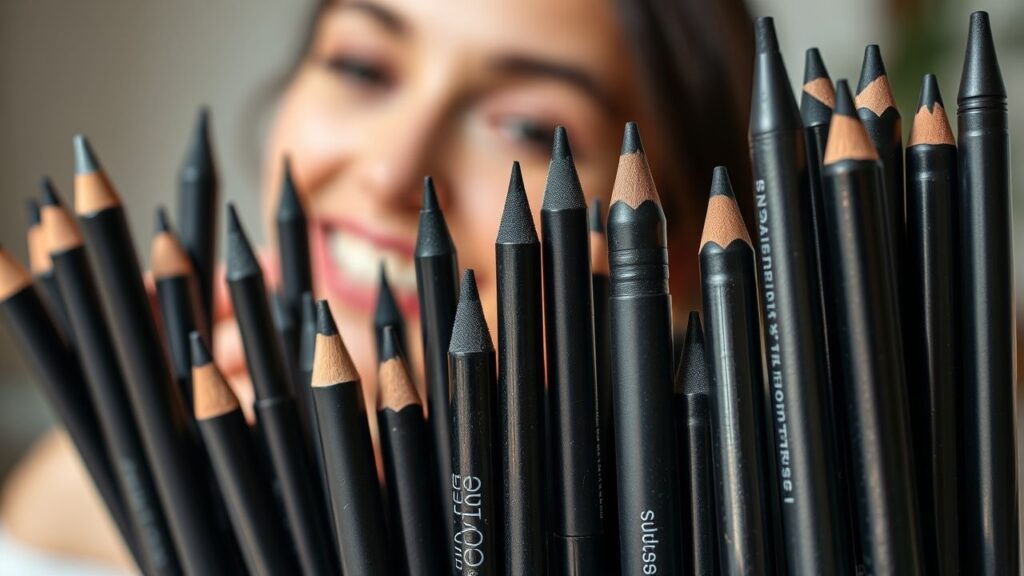 Imagina que o lápis de olho preto é só um, né? Mas existe uma variedade incrível, cada um com sua função e efeito. Vamos conhecer alguns?