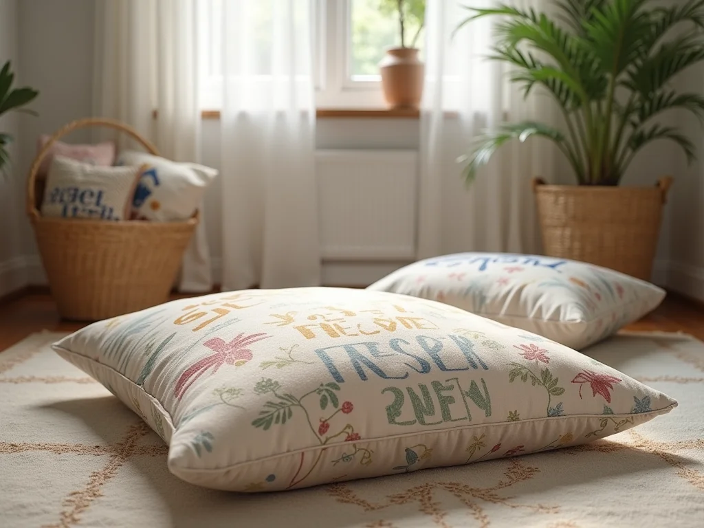 O tecido em poliéster ou Oxford é o segredo. Garante que a estampa fique viva e a peça seja durável. E o enchimento com fibra siliconada antialérgica dá aquela maciez especial, além de ser seguro para todos.