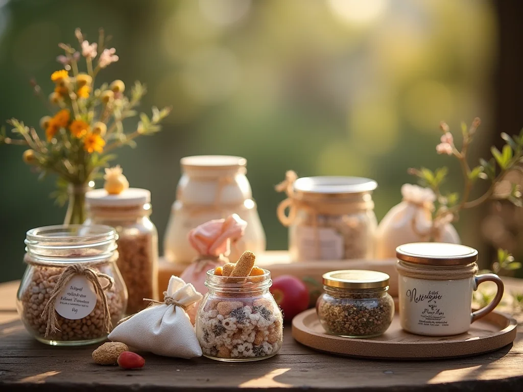 Sabonetes artesanais, potinhos com temperos ou doces caseiros são ótimas opções. Pequenos vasinhos com suculentas ou velas aromáticas também encantam e não pesam no bolso.