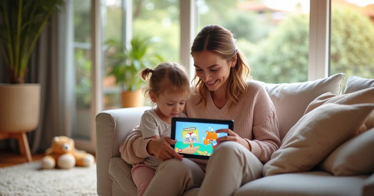 • Tablet ou TV com acesso a desenhos animados educativos.
